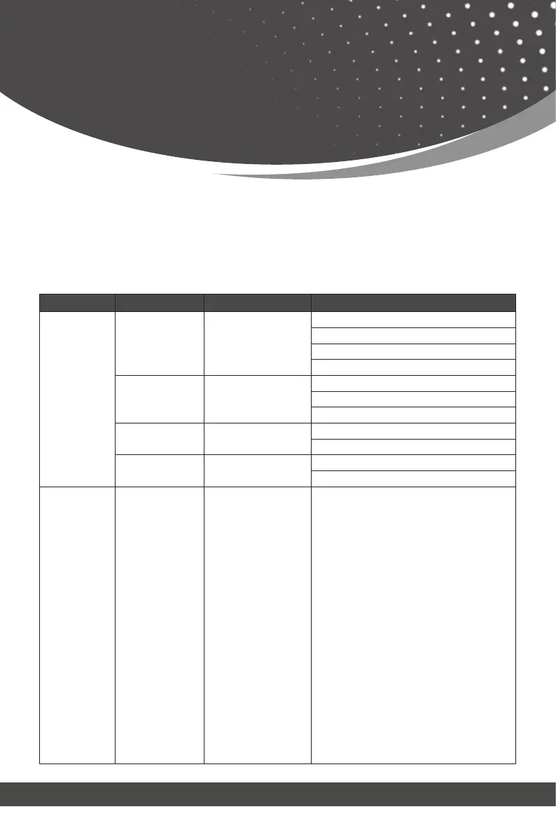 Menu contents are as follows: