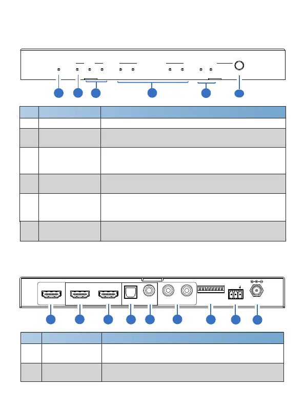 HDMI signal output indicators. The correspongding blue