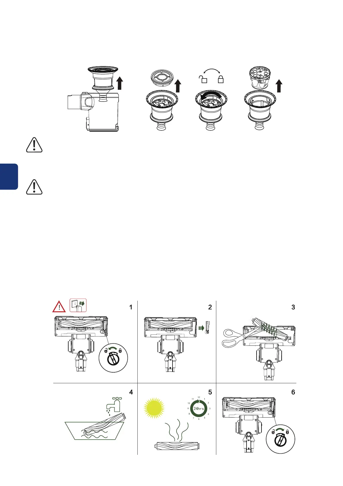 4. Waschen Sie die weiche Bürstenwalze (14) bei Bedarf nur mit Wasser.