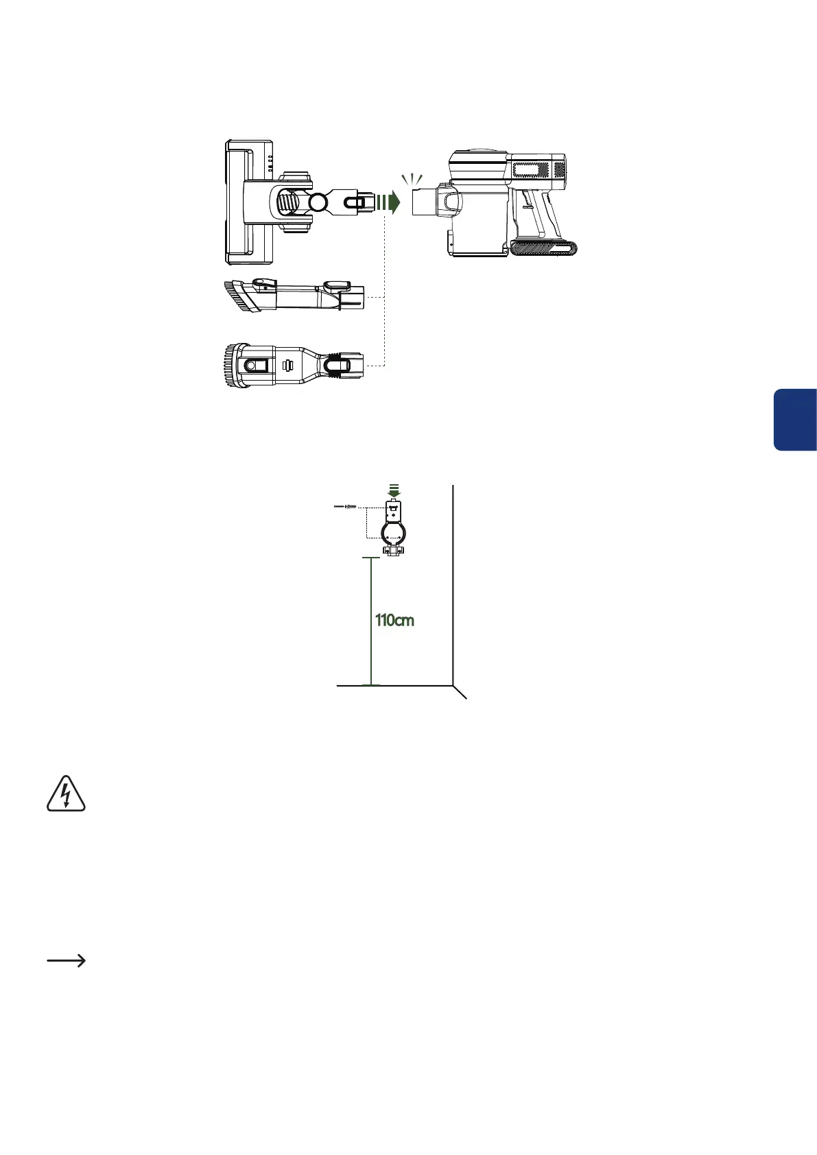 • Place the charging dock (16) on the wall at the desired height. Mark the screw hole locations.