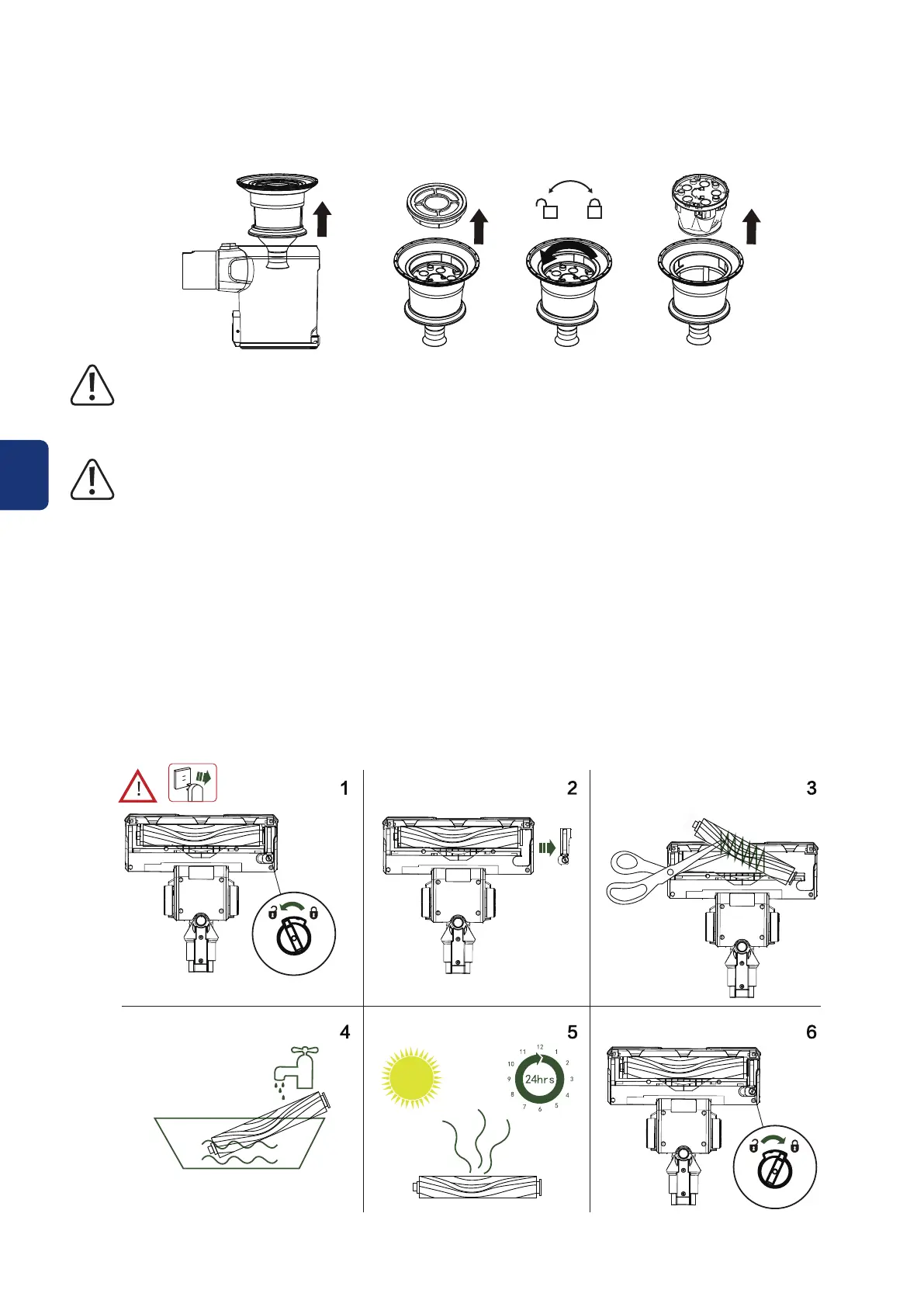 4. Lavare il rullo a spazzola morbido (14) secondo necessità, usando solo acqua.