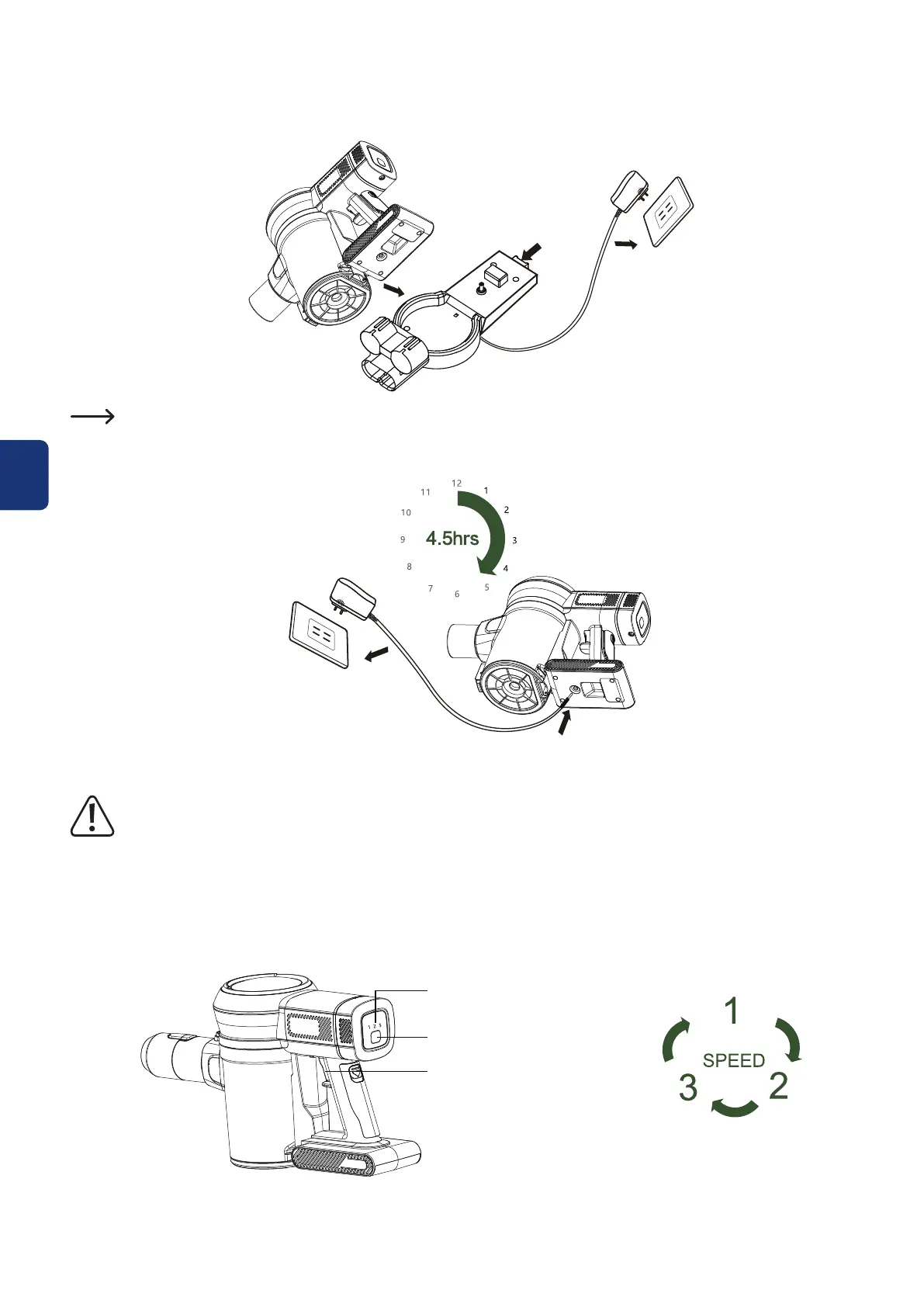 • Para carregar, ligue a porta de carregamento do aspirador portátil ao transformador (17)