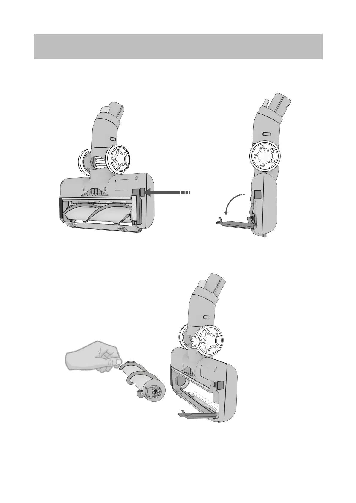 Turn the carpet nozzle over. Turn the bracket in the opposite direction of the arrow to the