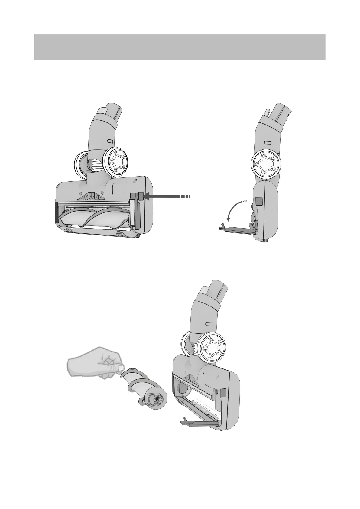 Drehen Sie die Teppichdüse um. Drehen Sie die Halterung in die entgegengesetzte