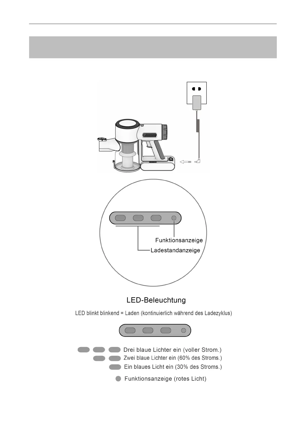 Schließen Sie das Gerät an und laden Sie es auf, bis alle drei blauen LED-Leuchten