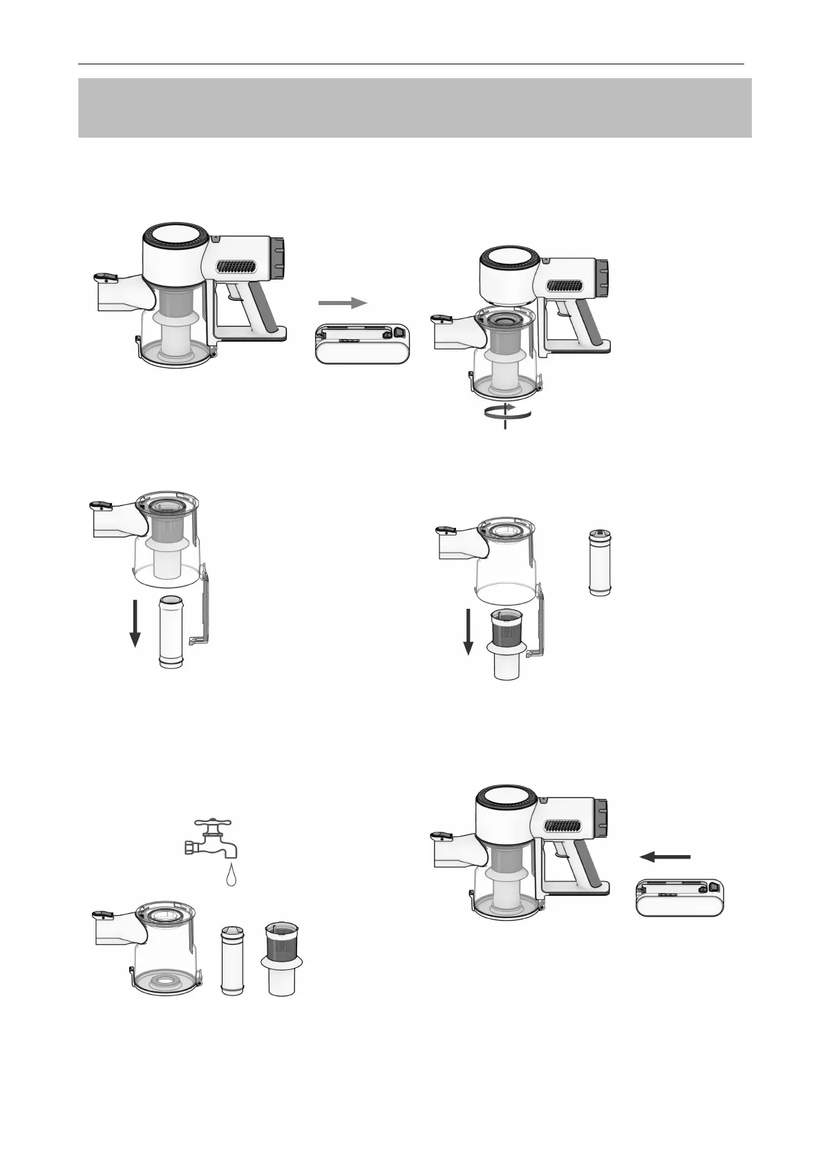 Filter mit Wasser waschen, bis der Staub