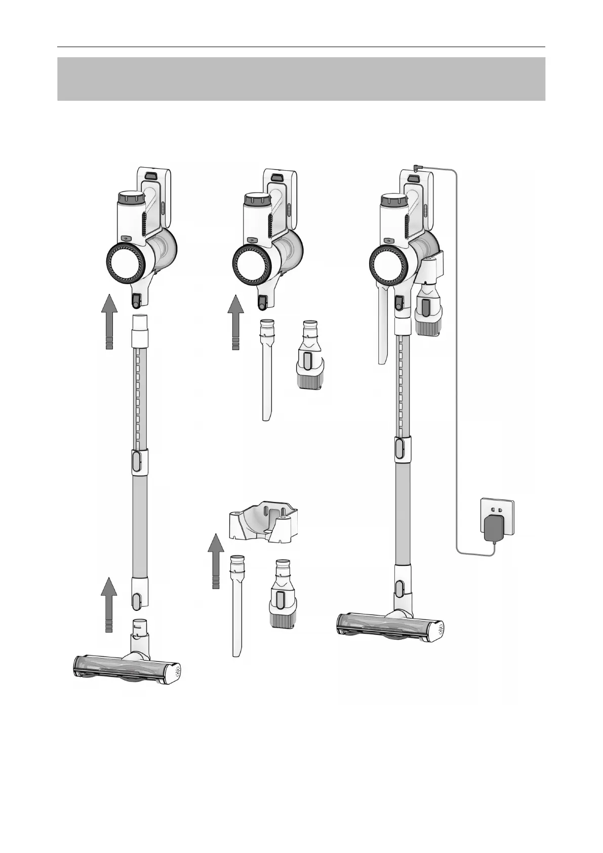 Insert powered wand into handheld Vacuum Cleaner and attach the brush or other tools.