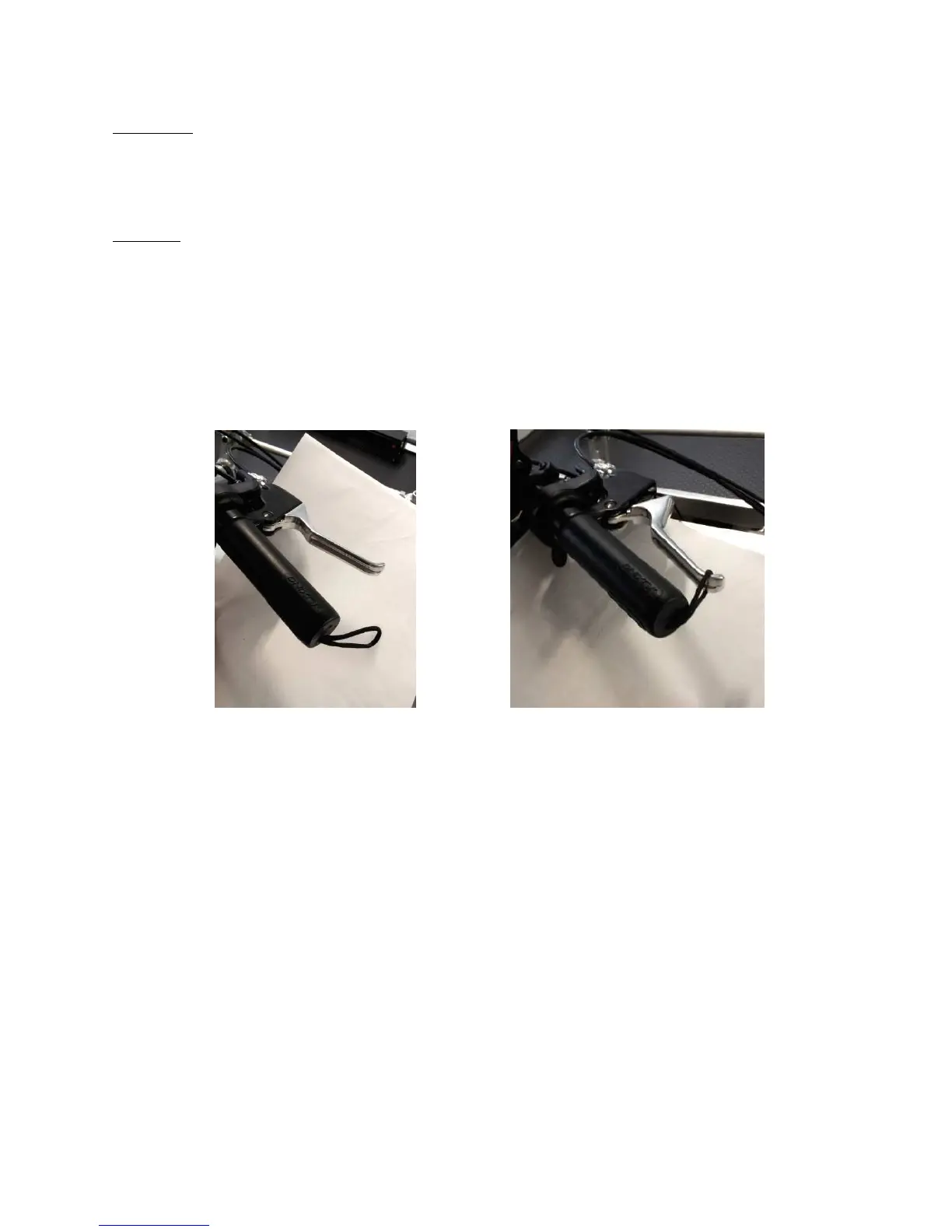 The parking brake is a simple loop on the end of the right-side handgrip. To activate