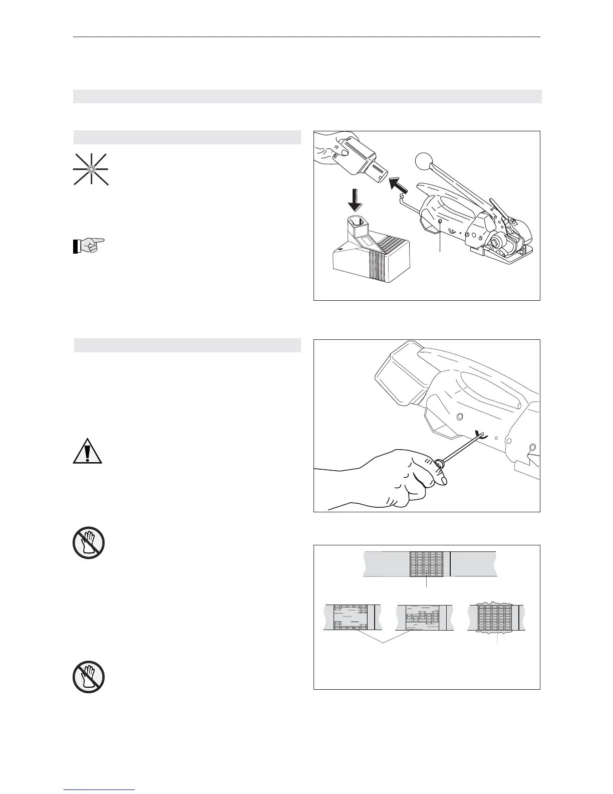 – Insert charged battery and lock with bow spring.