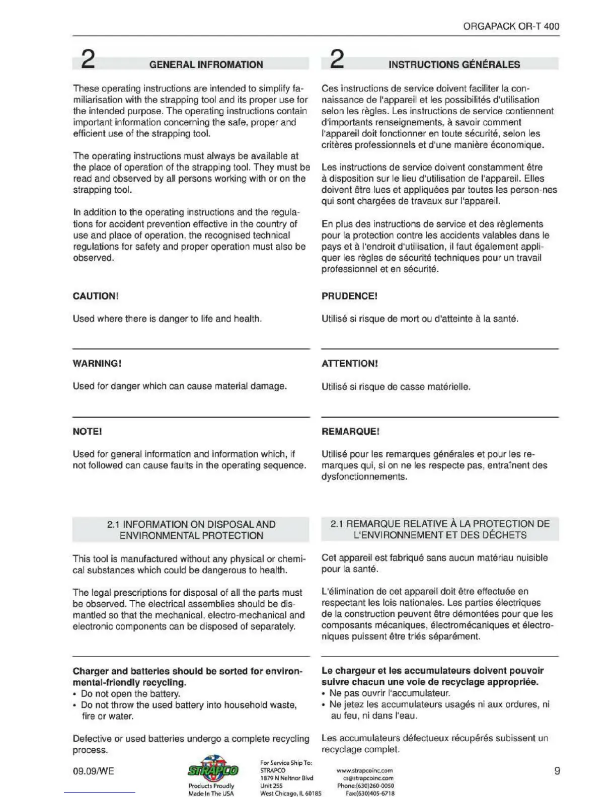 Orgapack ORT 400 - General Information; Disposal and Environmental Protection
