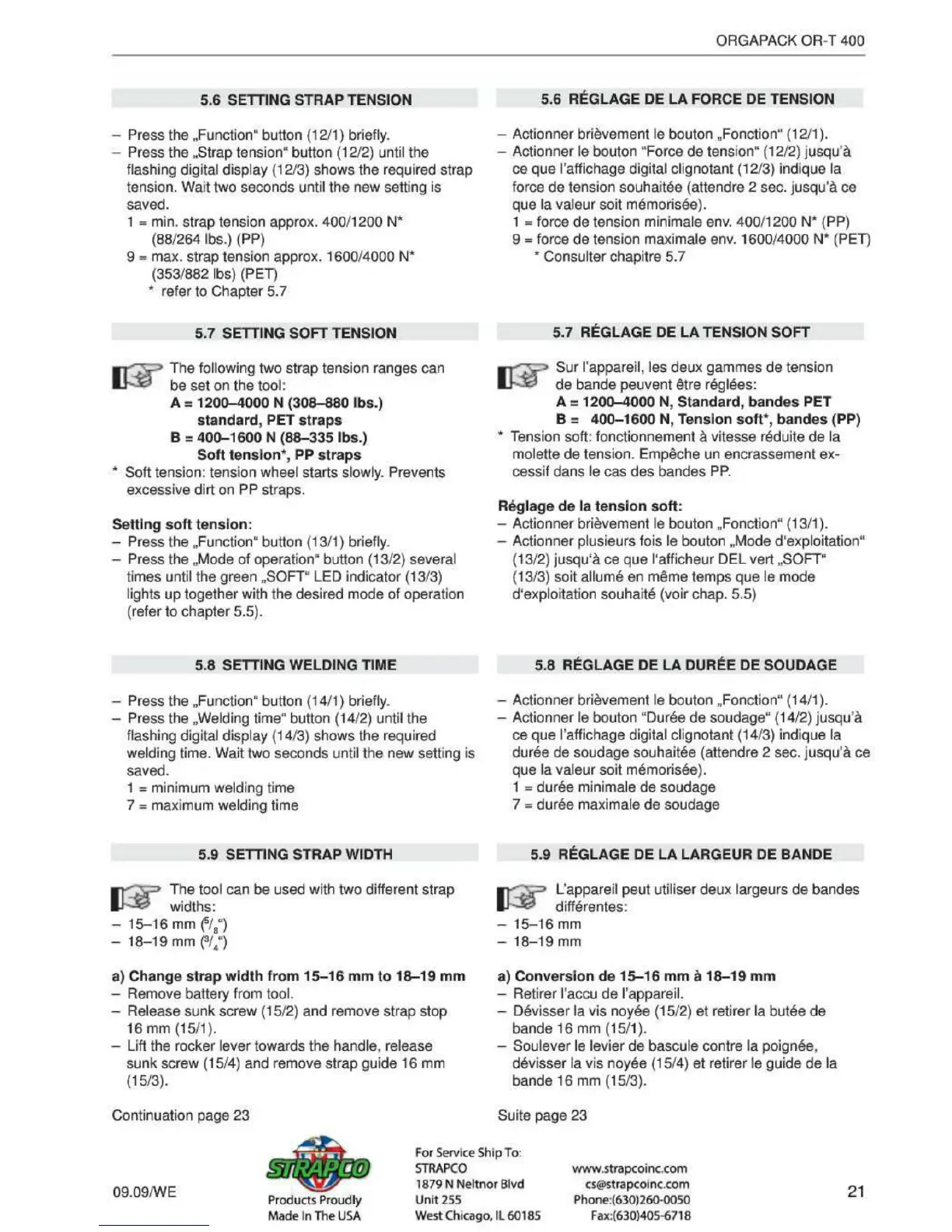 Orgapack ORT 400 - Setting Strap Tension; Setting Soft Tension; Setting Welding Time; Setting Strap Width