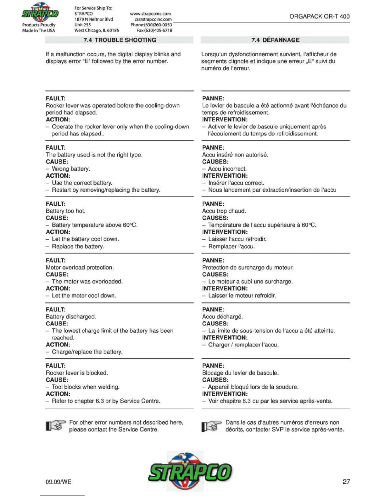 Orgapack ORT 400 - Troubleshooting Common Faults