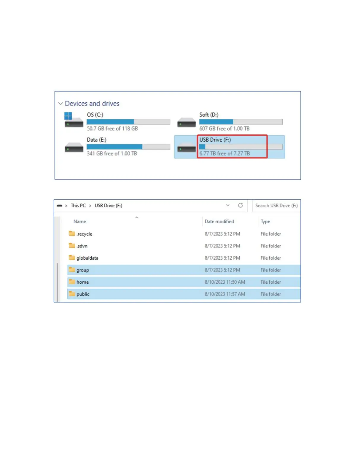 In the mobile hard disk mode, data needs to be stored in accordance with the default