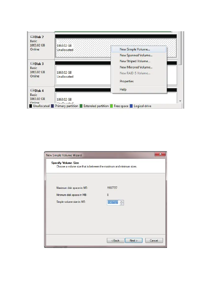 (3) Right click on unallocated new drive, select “New Simple Volume” will start to add