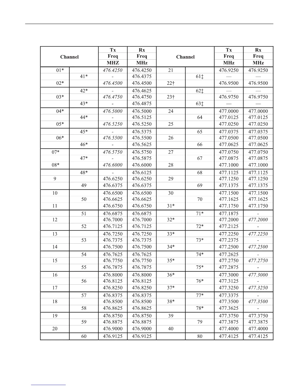 Oricom DTX4200 - UHF CB Channels and Frequencies