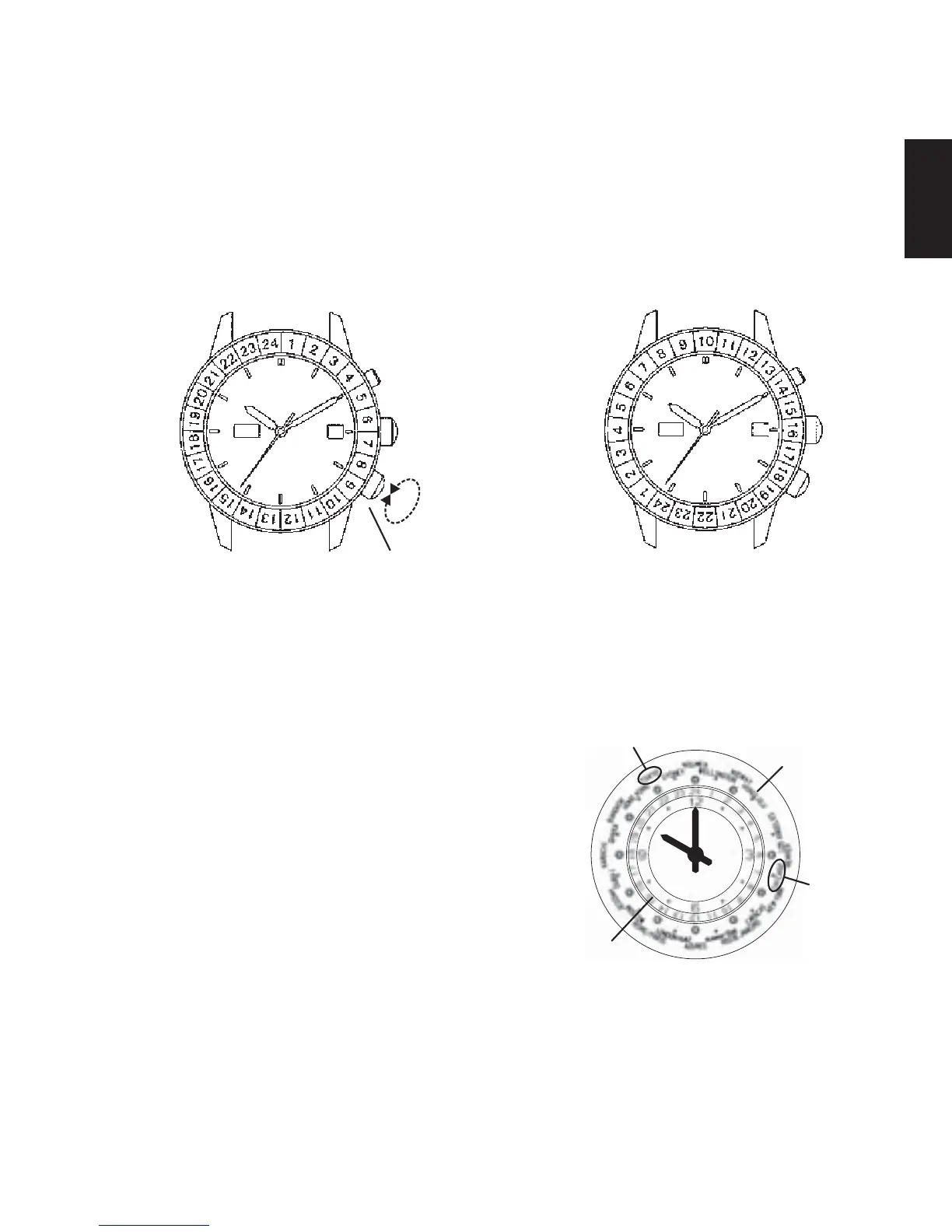 right, since the time in Tokyo is 10:08, align “10” on the rotating indicator ring