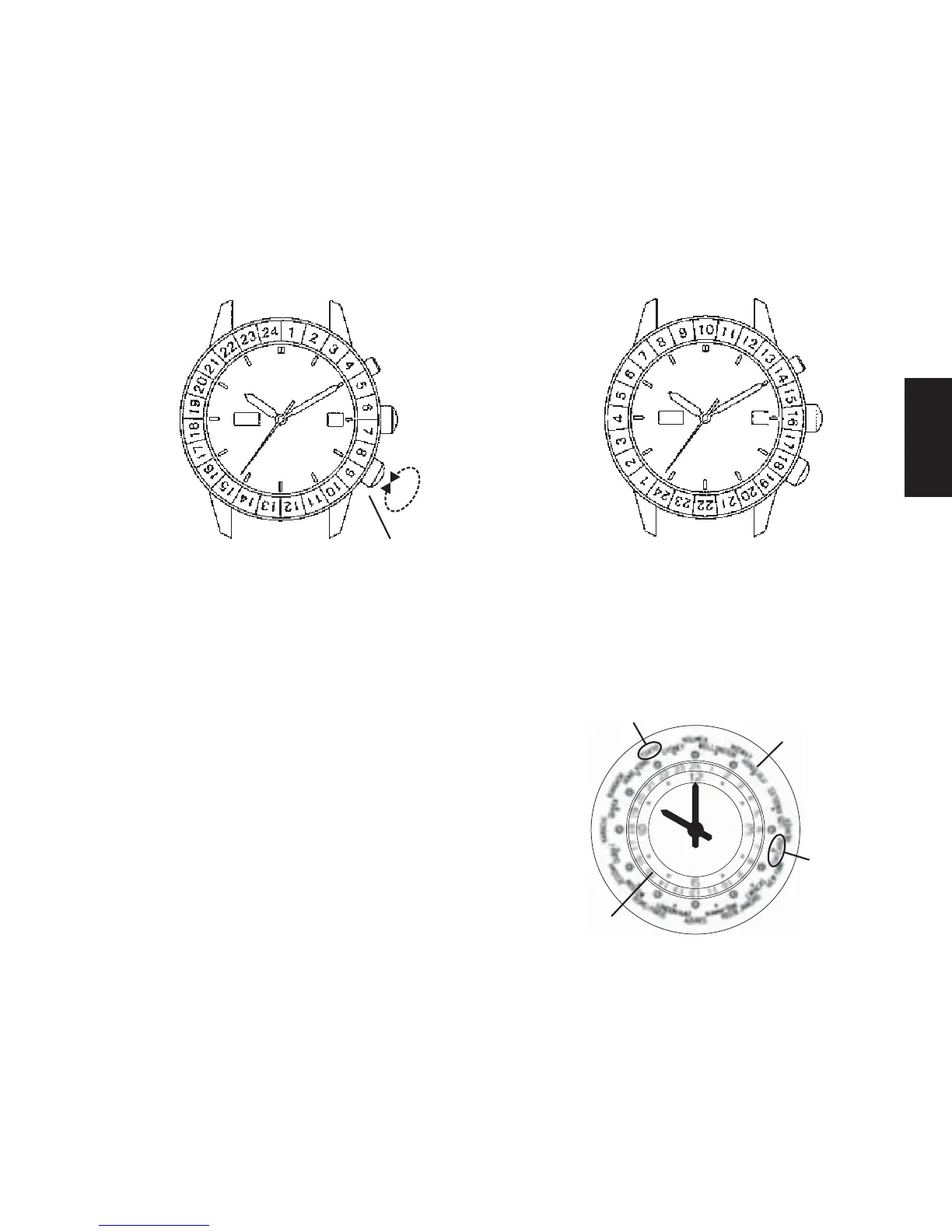 * La posición indicada por cada escala en el bisel de hora internacional