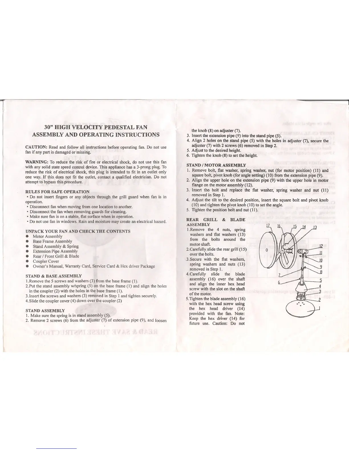 Orient HVP30 - Fan Assembly; Stand and Base Assembly; Stand Assembly; Stand and Motor Assembly