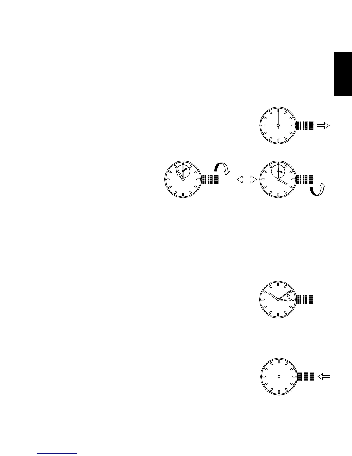 • If further adjustment of the day of the week hand is required, turn the