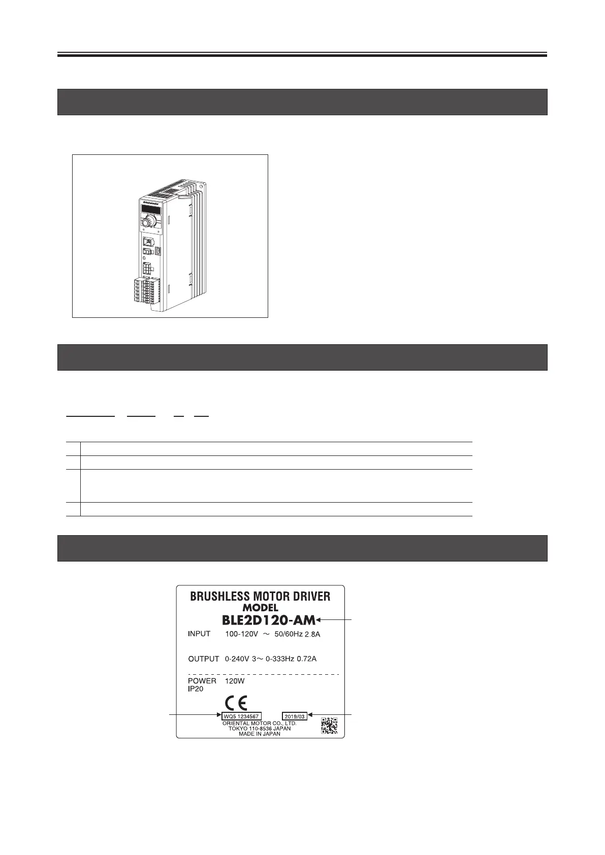 The following nameplate is an example of the output power 120 W type driver for electromagnetic brake motor.