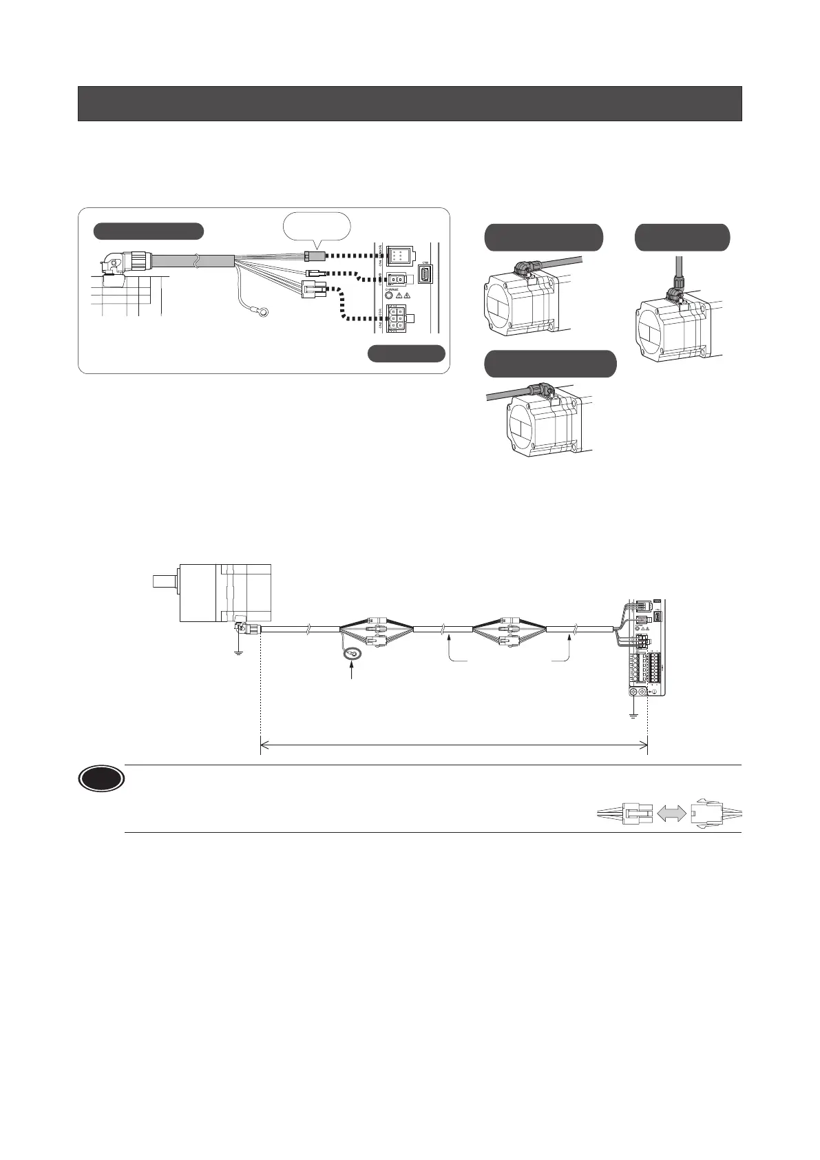 The connection cable for extension can be used by connecting up to two pieces. The wiring distance between the motor and