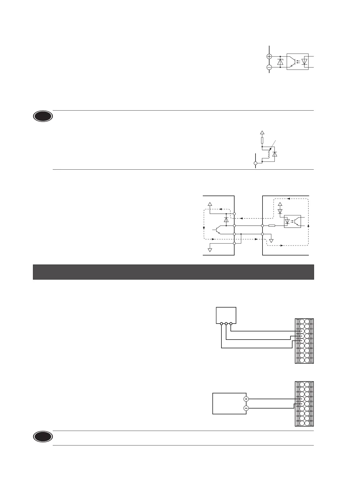 When connecting a relay (inductive load), etc., to detect alarm outputs, provide