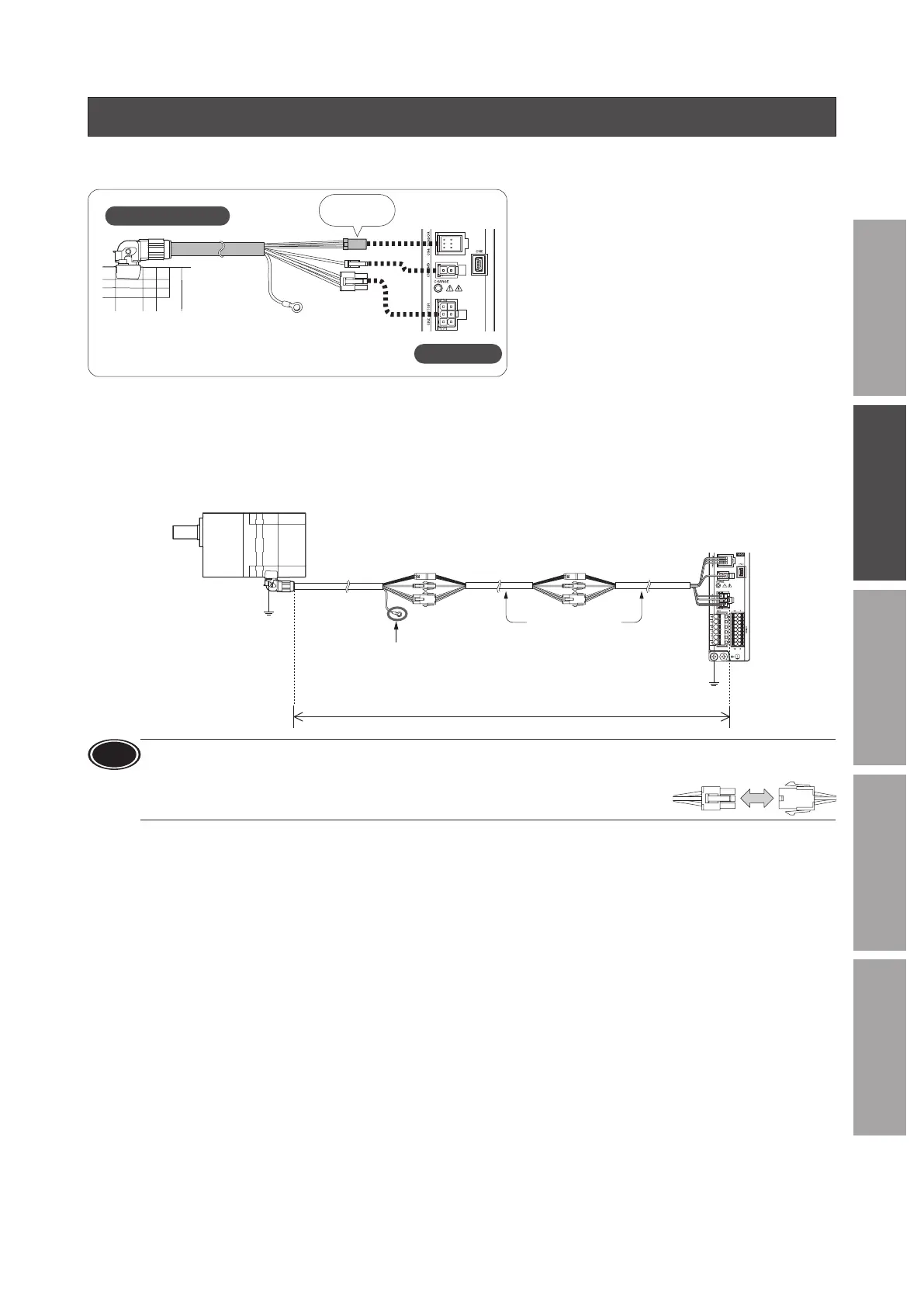 The connection cable for extension can be used by connecting up to two pieces. The wiring distance between the motor and