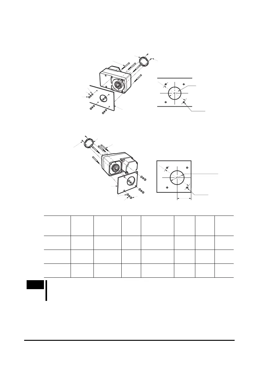 When installing the gearhead by using its rear side as the mounting surface,