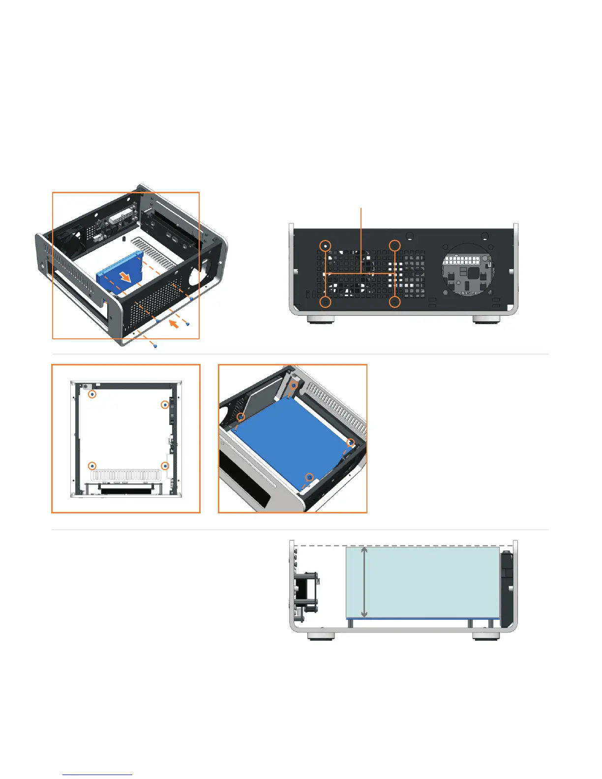 The M10 supports a 2.5 inch HDD or SSD. A HDD or SSD requires the 4 fixing screws on the