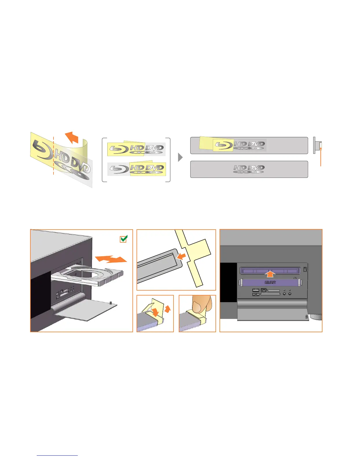 tray closed, position inside the drive opening and press firmly against the front of the tray to
