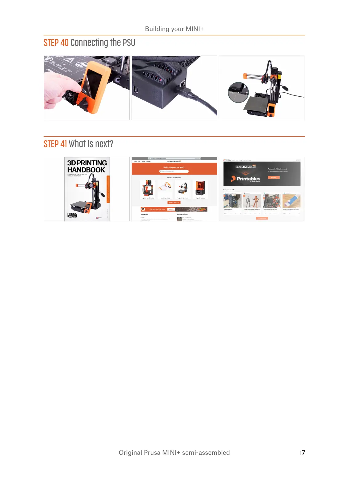 Original Prusa MINI+ - Step 40 Connecting the PSU; Step 41 What is next?