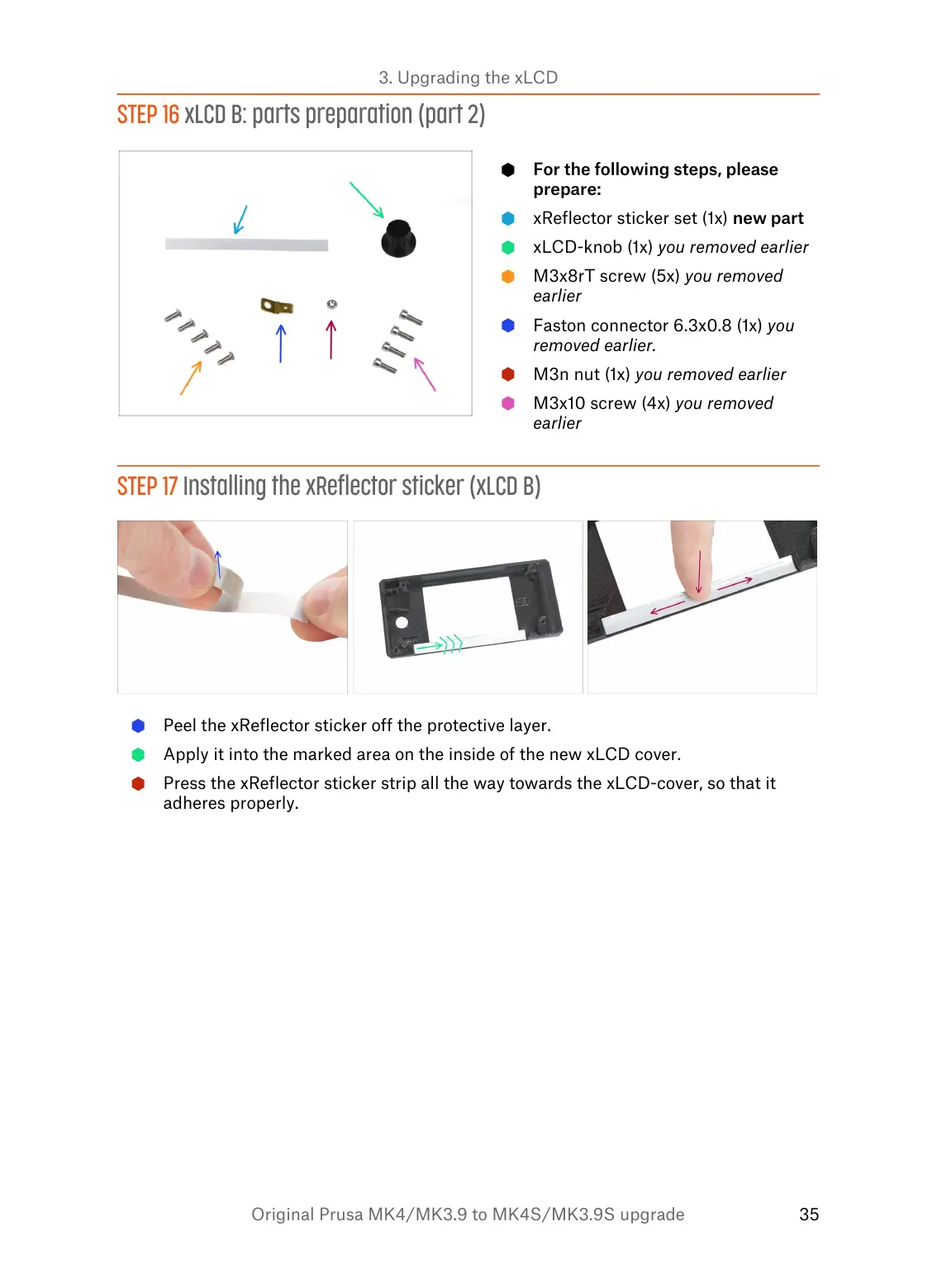STEP 17 Installing the xReflector sticker (xLCD B)