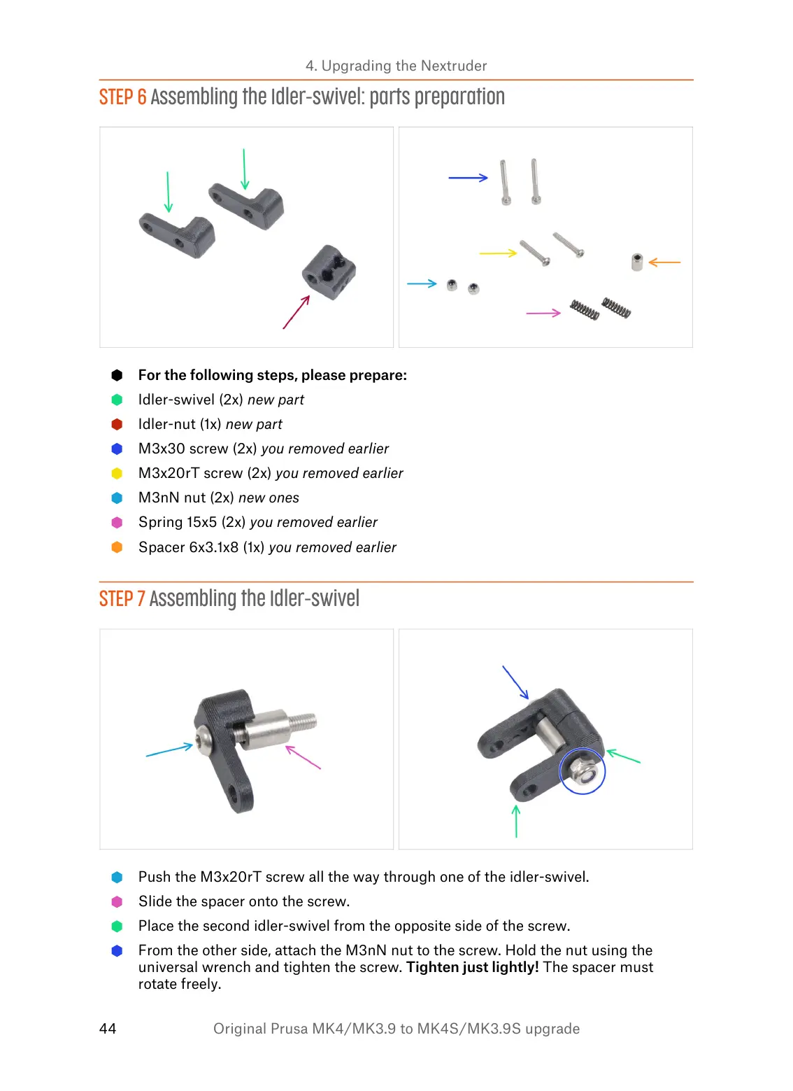 STEP 6 Assembling the Idler-swivel: parts preparation