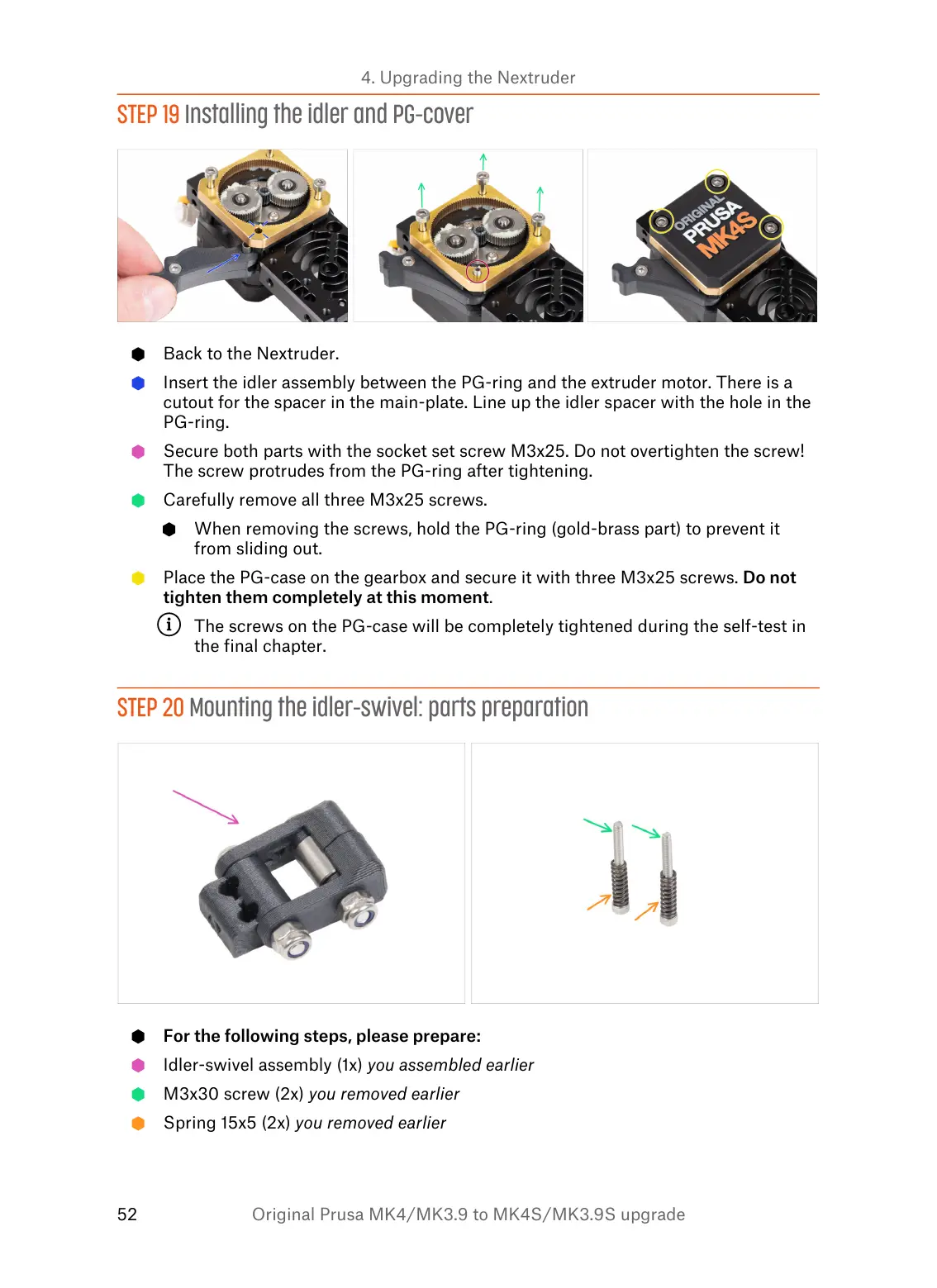 52 Original Prusa MK4/MK3.9 to MK4S/MK3.9S upgrade