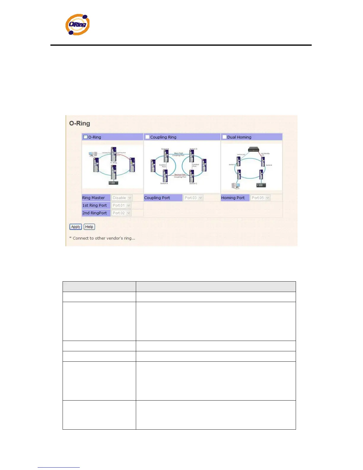 Ring Supports 3 Ring topology: O-Ring, Coupling Ring and Dual Homing.