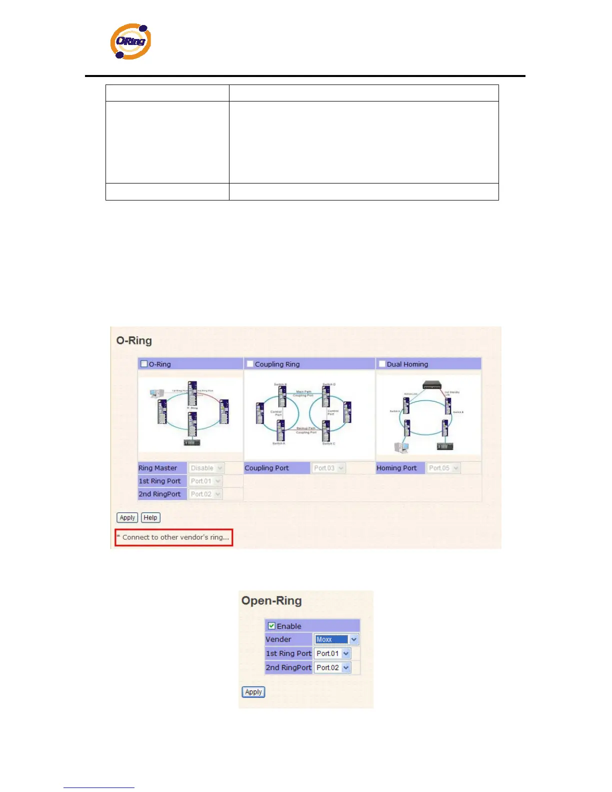 Open-Ring to co-operate with other vendor’s managed switch.