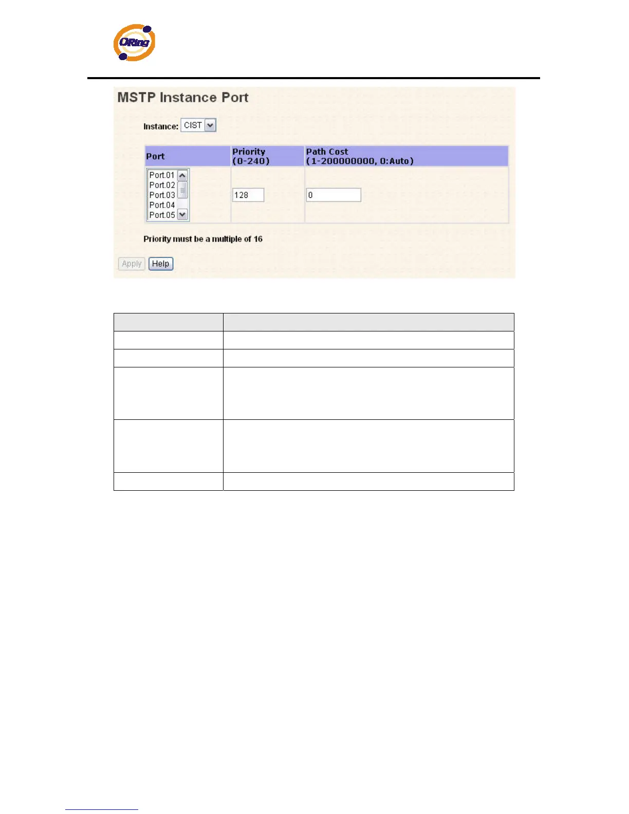 MSTP Instance Port interface
