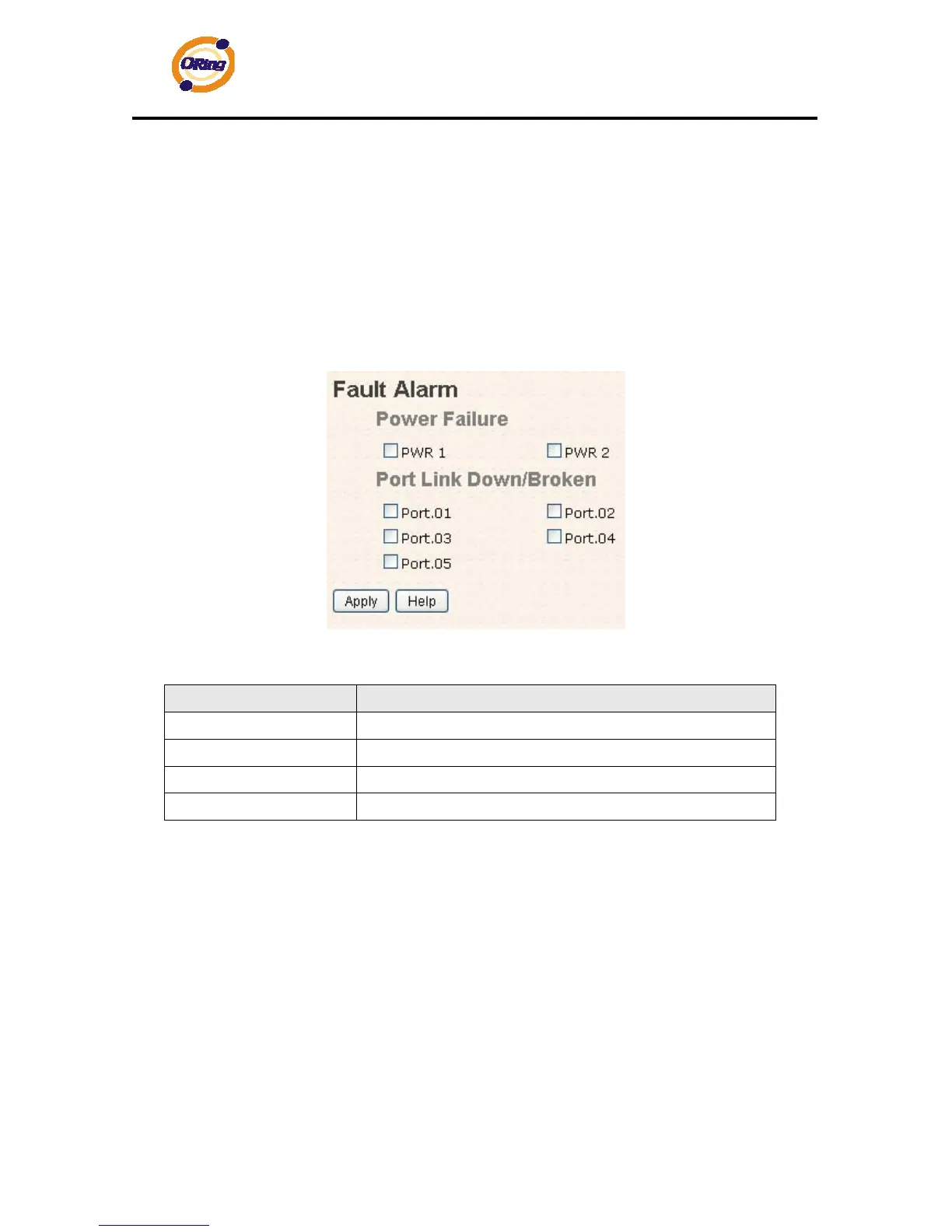 When any selected fault event is happened, the Fault LED in switch panel will light up and