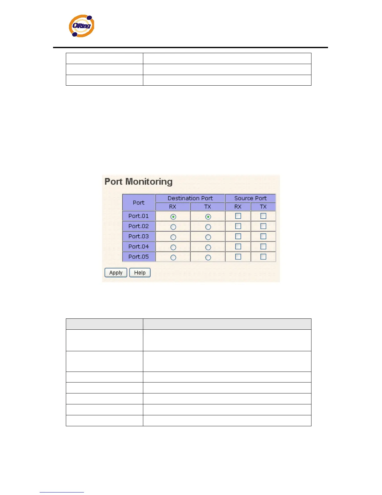 The port will be monitored. Mark the blank of TX or RX to be