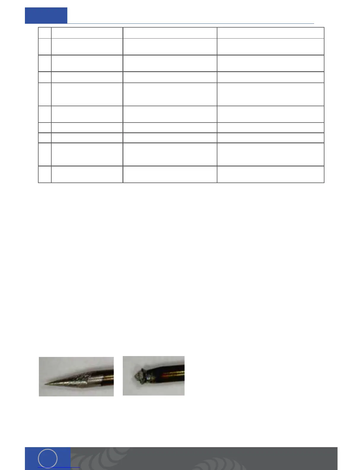 4 Porosity in the work piece Damaged electrode with jagged tips Re-grind electrode