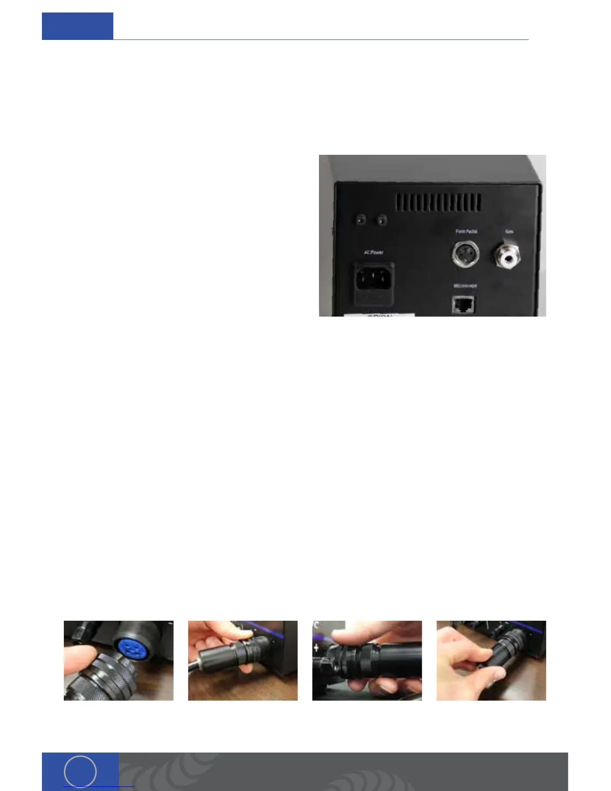 3. Plug the foot pedal into the “foot pedal” port