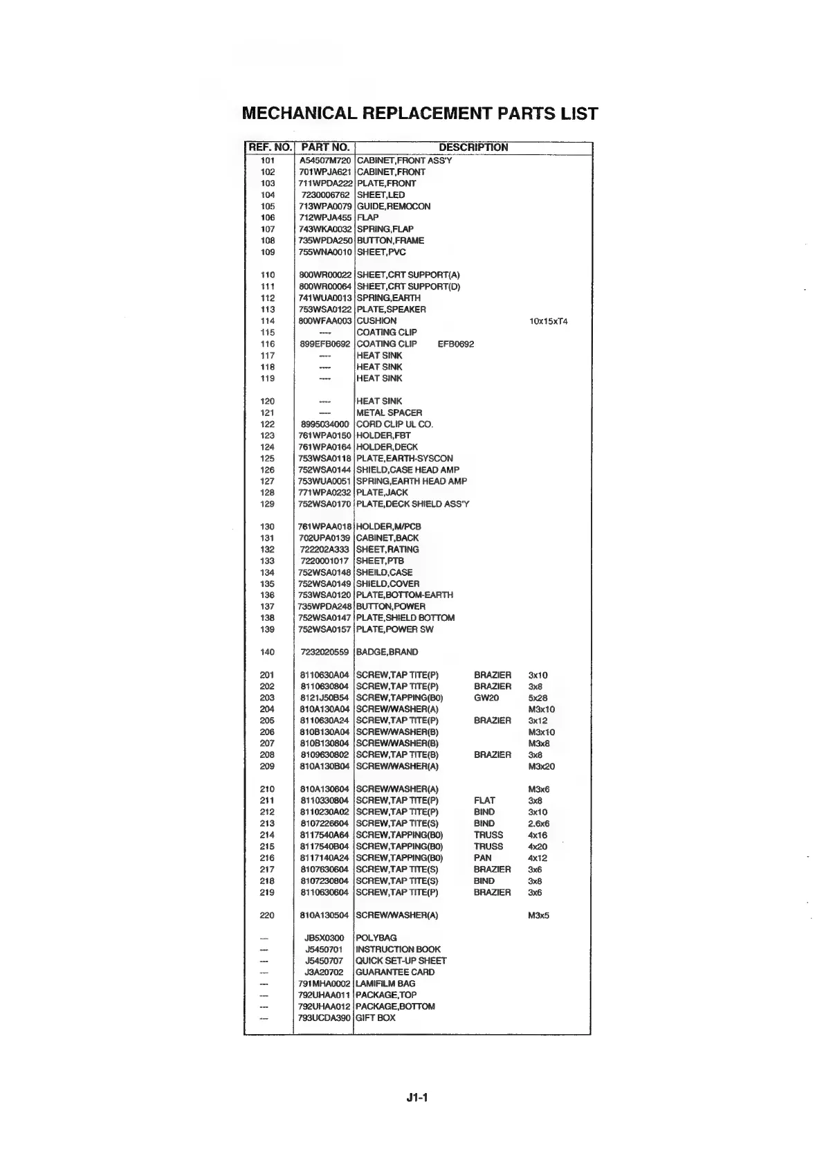 Orion COMBI 3601VT - Mechanical Replacement Parts List