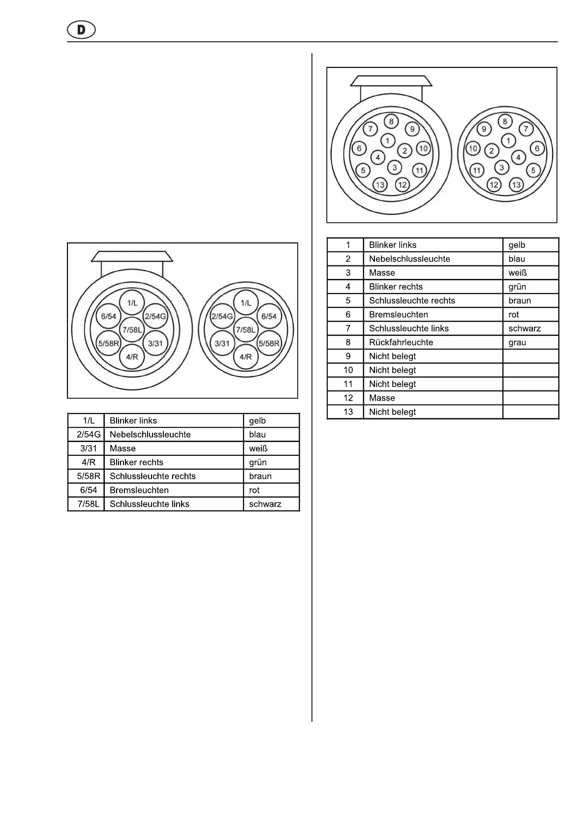 Steckerbelegung sind ausschließl ich für Umrüstungen bei