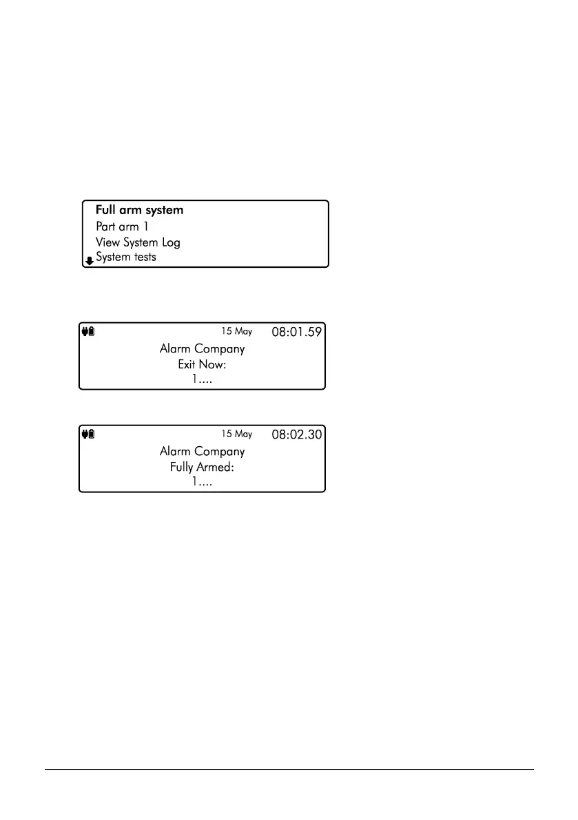 check that your areas are ready for arming. To full arm your area(s), please proceed as follows: