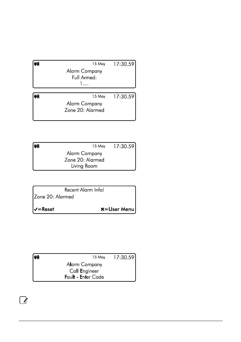 for the alarm will then be displayed on the keypad screen. For example: