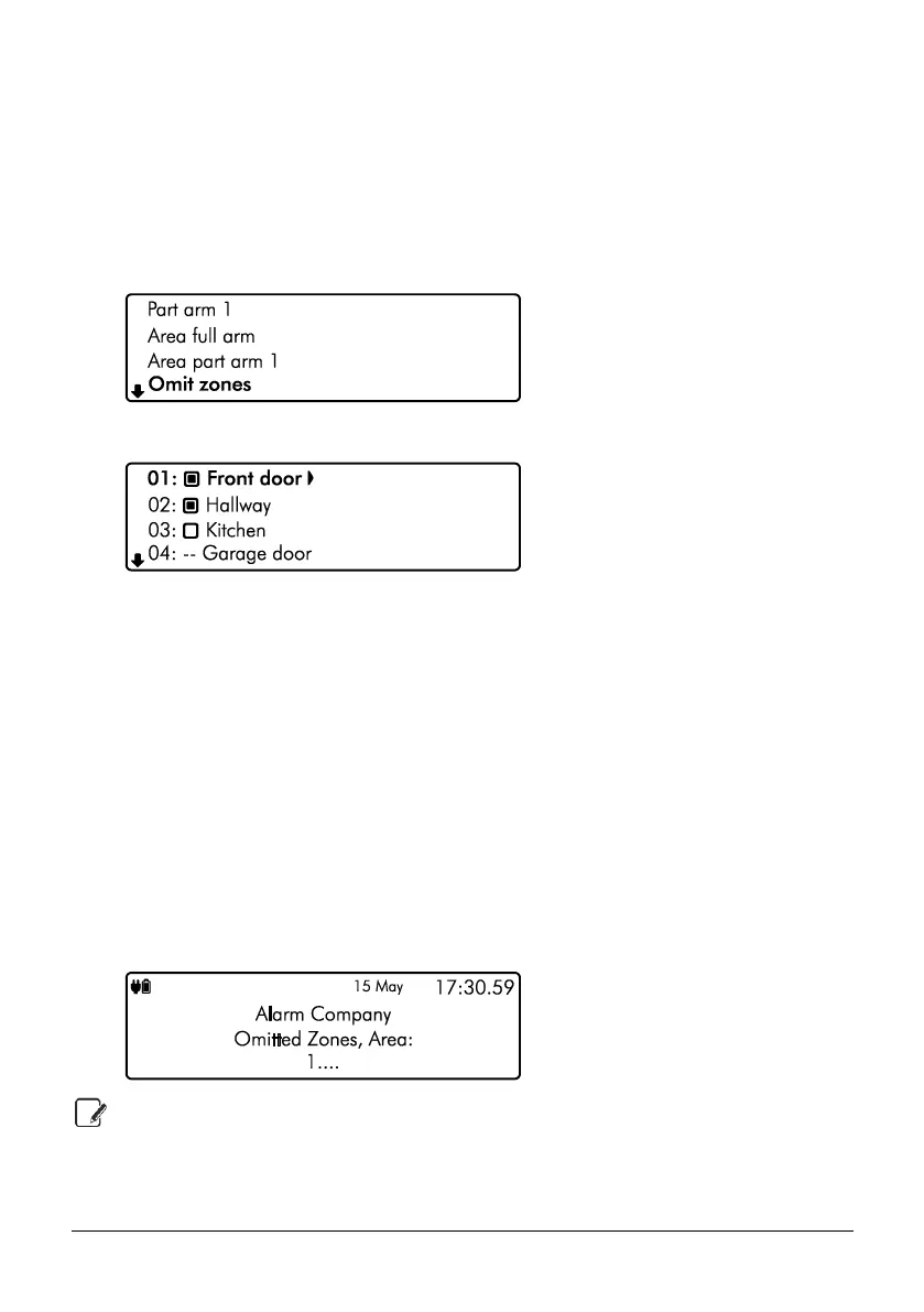 armed with selected zone(s) omitted by selecting the relevant arming menu.