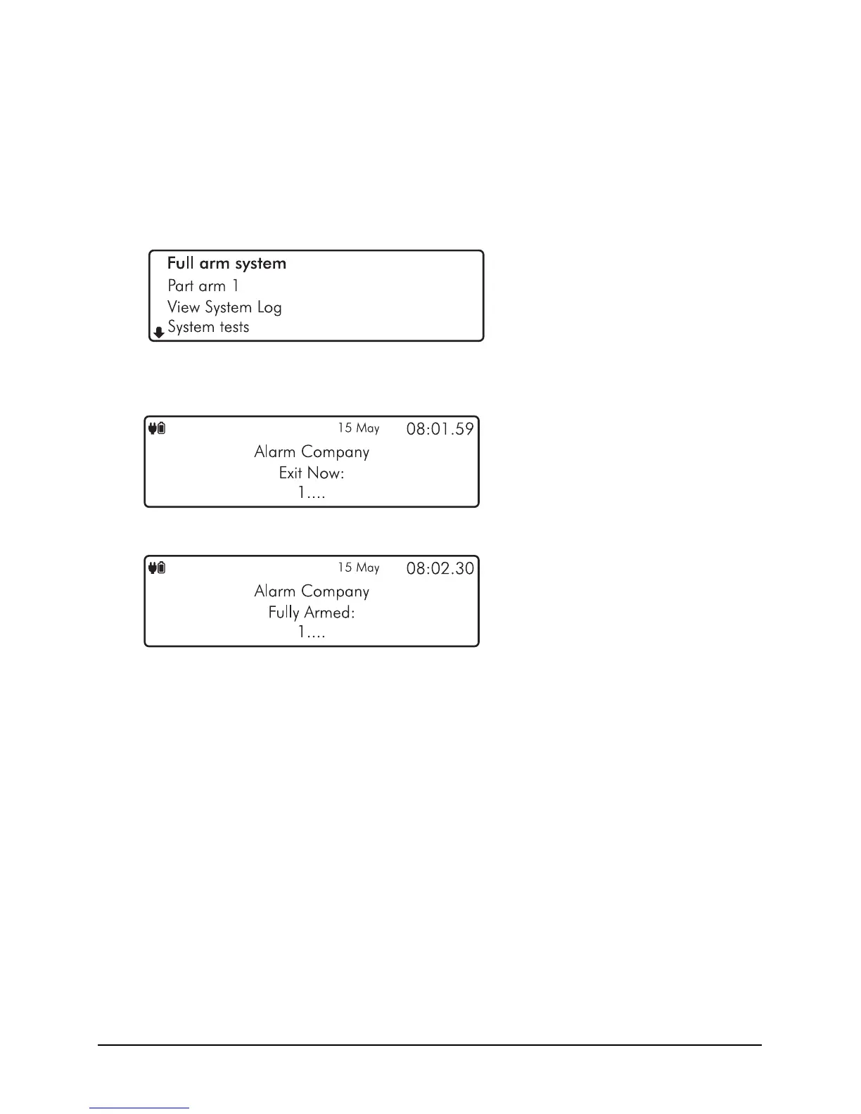 check that your areas are ready for arming. To full arm your area(s), please proceed as follows: