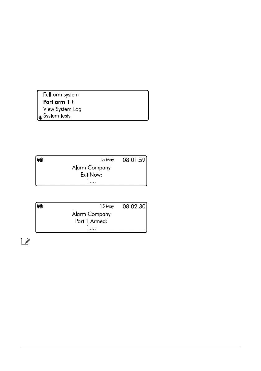 5. The keypad will then indicate that the system is part armed: