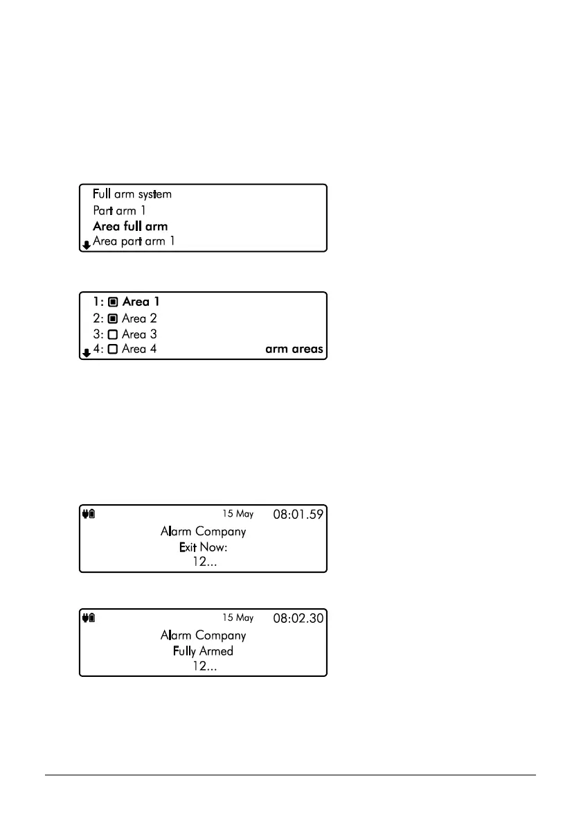 can arm individual or multiple area sets. To full arm selected areas, please proceed as follows: