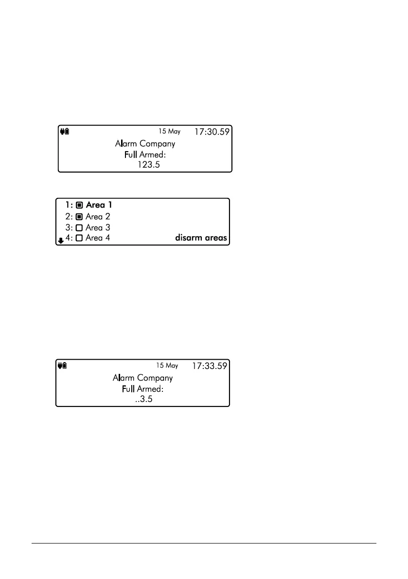 4. The selected areas are disarmed and the keypad displays any areas that have remained
